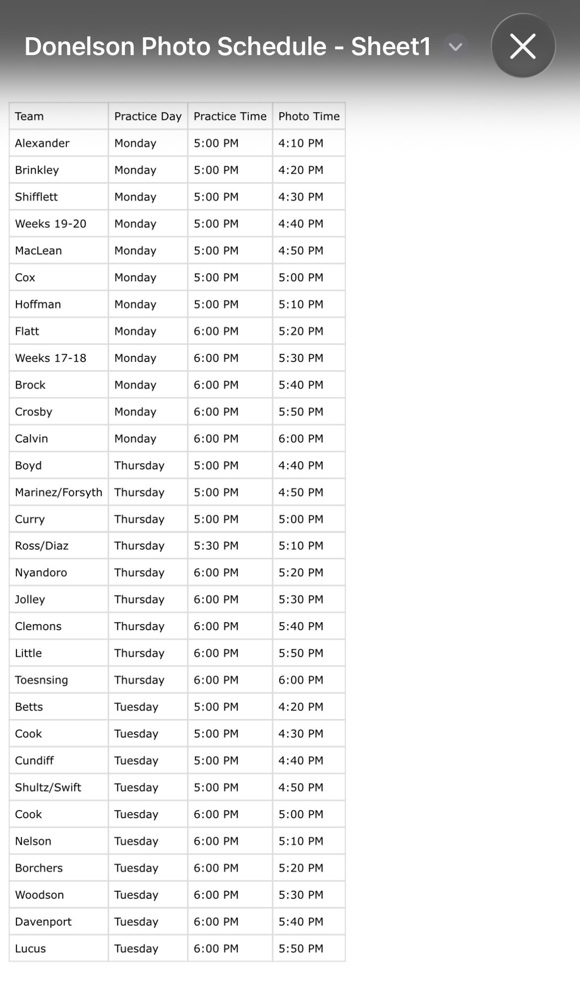 Spring Soccer Picture Schedule